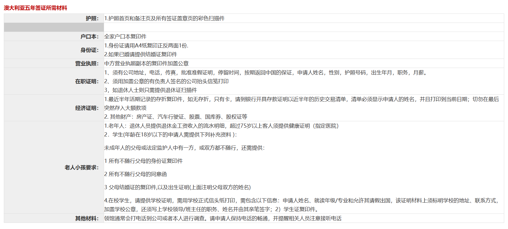 【澳大利亞五年簽證費用包含】以上報價已含澳大利亞領館收費、我司服務以及英文翻譯費。