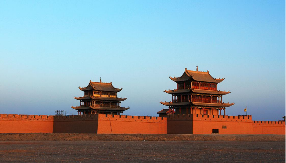 嘉峪關始建于明朝,是明長城沿線最為壯觀的關城。因地勢險要,建筑雄偉而有“天下第一雄關”、“連陲鎖鑰”之稱。登上城墻遠眺,