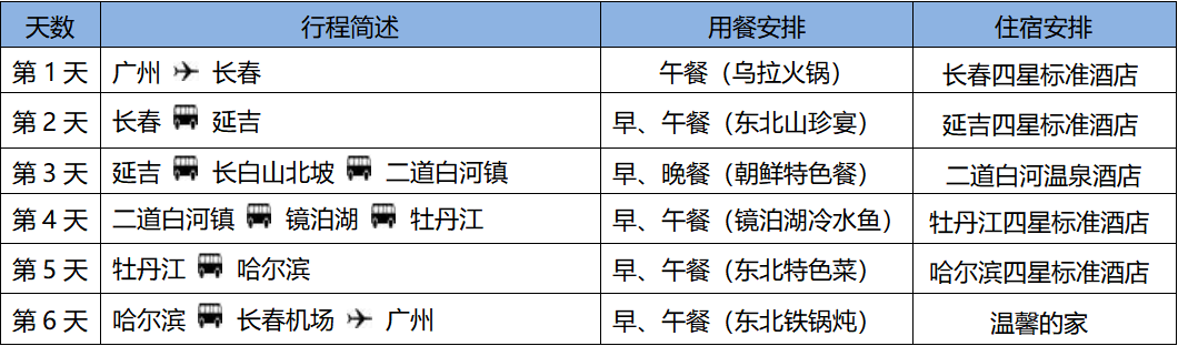 住宿:延吉長白松賓館、華陽酒店、翔宇酒店、韓元智能酒店、沉香里酒店、長白山大酒店或同級