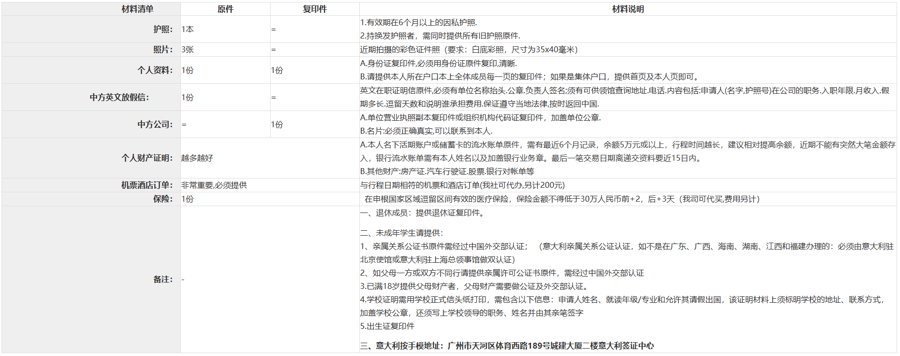 【意大利旅游簽證費用包含】 以上報價已含意大利領館收費、我司服務費以及英文翻譯費。