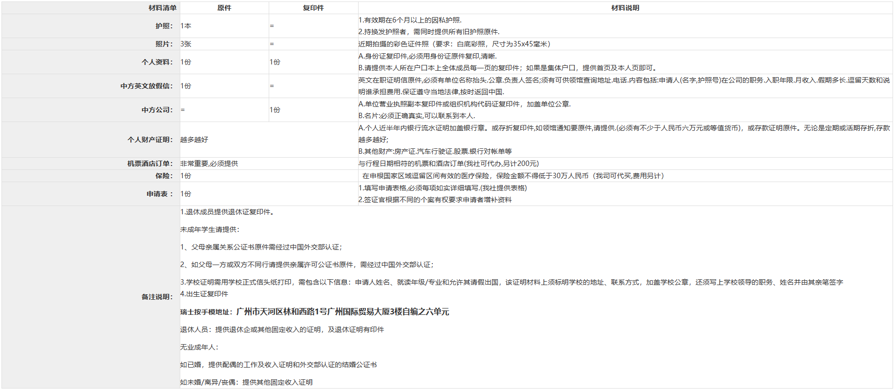 【瑞士旅游簽證費用包含】 以上報價已含瑞士領(lǐng)館收費、我司服務(wù)費以及英文翻譯費。