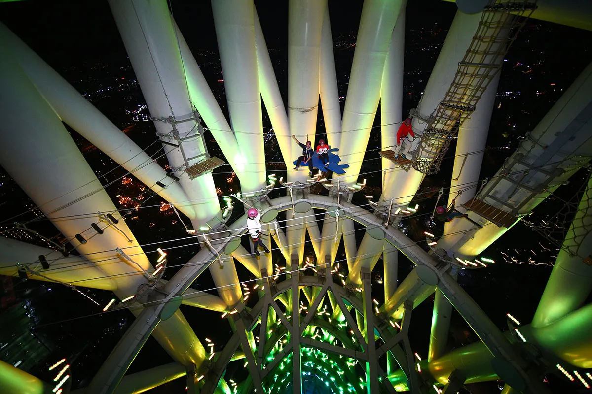 阿爾法探索樂園:包括云端漫步、凌空探險以及探索阿爾法等三大項目,集探險、團(tuán)建、研學(xué)多功能于一體,以往只能在多倫多塔、迪拜塔、悉尼大橋等國外地標(biāo)上才能體驗到的項目,如今在廣州塔就能近距離深度體驗。其中凌空探險位于33層到58層之間,是廣州塔阿爾法探索樂園中極具挑戰(zhàn)性、驚險性和刺激性的重磅項目。