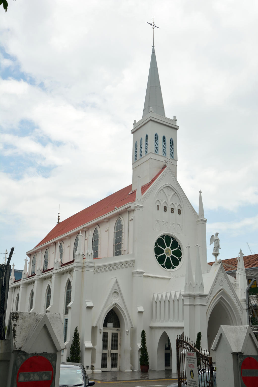 該教堂位于沙面大街與沙面一街交界的東北轉(zhuǎn)角。由大堂,神父樓、修女樓、圣母山組成,大堂在前,神父樓在后偏東,修女樓在后偏西,圣母山在大堂偏東。現(xiàn)有附屬建筑二幢,一幢為兩層樓房,一幢為平房。教堂基本保存完好。立面主要門窗的山尖和塔樓四角的小尖塔,八角形攢尖頂上復(fù)雜的采光窗和棱垛,還有下連續(xù)的小尖拱和由上向下授粉的扶壁柱。反映出天主教堂神秘而向往“天國”的特征。