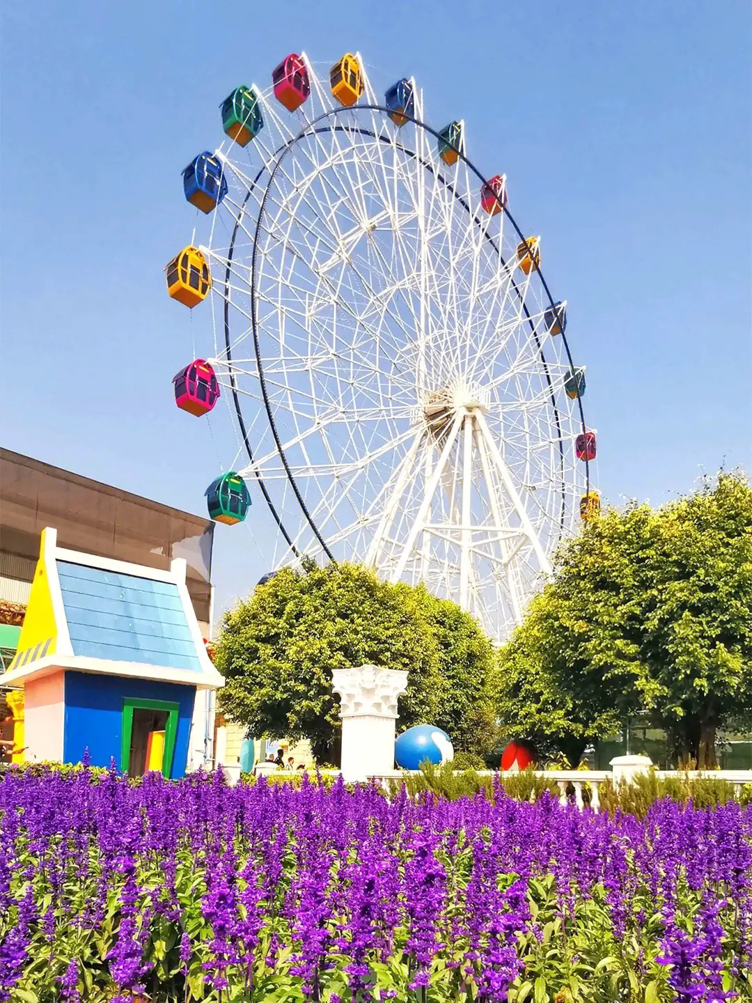 三座粉、藍相間的巨型迪斯尼風格門樓,一片橙色的仙女花在陽光恬靜地流敞著。七個巨型的氣球“串”綻放繽紛色彩,邊上還圍著精美的花柱。香格里拉,正如其名,有著一種永恒、和平、寧靜的 “世外桃源”。